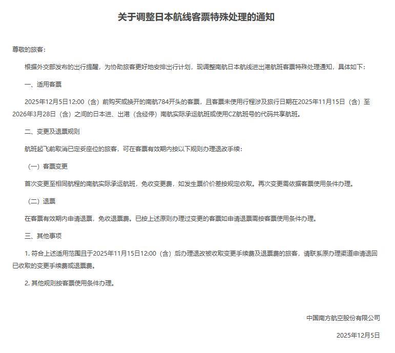 南航适用条件适用客票:2025年12月5日12:00(含)前购买或换开的南航784开头的客票配资操盘开户,且客票未使用行程涉及旅行日期在2025年11月15日(含)至2026年3月28日(含)之间的日本进、出港(含经停)南航实际承运航班或使用CZ航班号的代码共享航班。