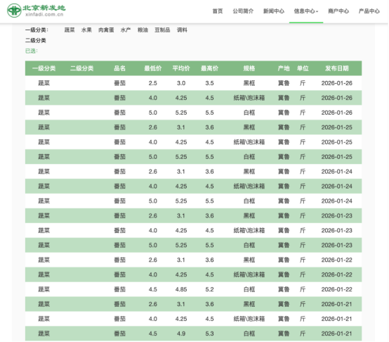 近期北京新发地西红柿批发价(来源:新发地官网)